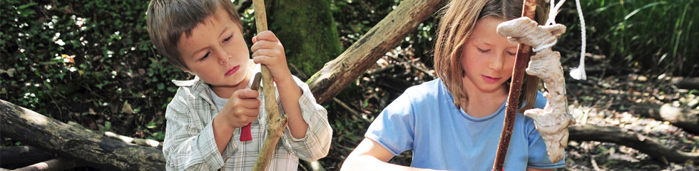 Abenteuer Wald mit allen Sinnen erleben. Bäume und Pflanzen, Hüttenbau, Nahrungssuche, Feuer machen, Stockbrot grillen, ...