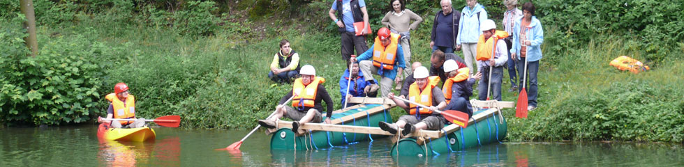 Ihr Team hat die Aufgabe, aus Balken, Seilen und Tonnen ein tragfähiges Floß zu konstruieren, das nach dem Bau auf dem Wasser getestet werden wird. Ausgestattet mit Schwimmwesten und Paddeln lassen, Sie Ihr Floß vom Stapel. Bei Events mit mehreren Teams bringt ein Wettpaddeln auf dem See jede Menge Spaß. Oder die Bergung eines Schatzes von einer Insel in der Mitte des Sees... Ein perfekter Sommer-Team-Event.